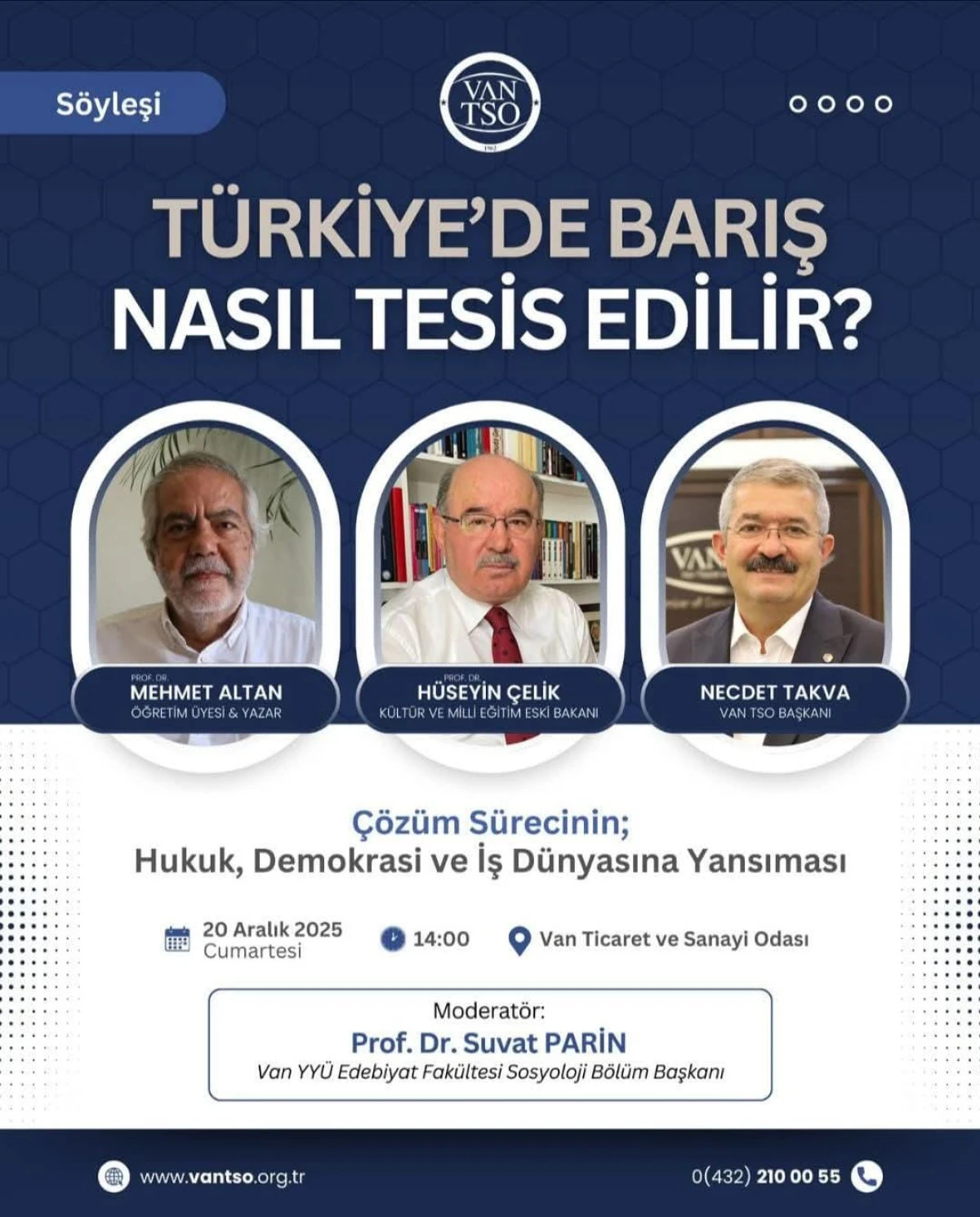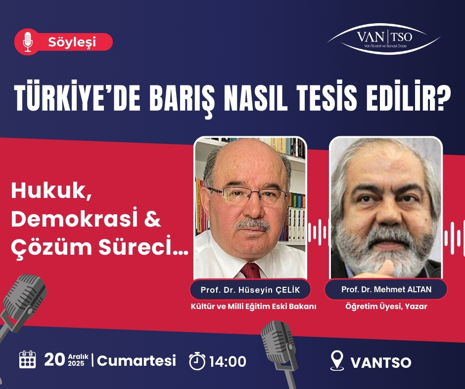 20 Aralık Cumartesi Günü Saat 14:00'de Van TSO'da düzenlenecek olan Panele katılacağı belirten Çelik'e Akademisyen ve Yazar Prof.Dr.Mehmet Altan da eşlik edecek.