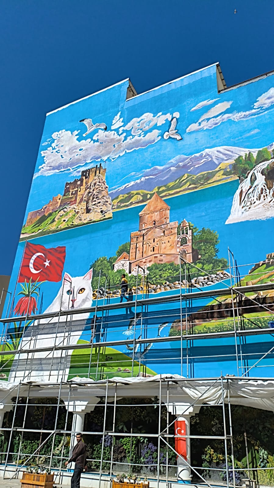 İşte o çalışmalardan detaylar. Başta Van Kedisi, Akdamar Adası,Hoşap Kalesi,Muradiye Şelalesi,Van Kalesi,Van Balığı,Ters Lale Figürleri ustalıkla duvara işlendi ve çarşaıya gelen ziyaretçilerden tam not aldı.